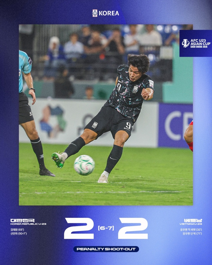 01月24日讯 U23亚洲杯,韩国U23点球大战不敌越南,拿到本届赛事的第4名。
